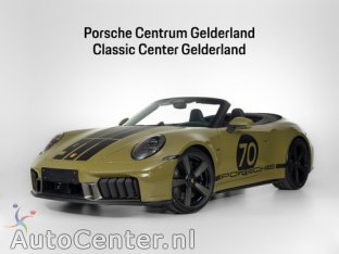 Aanvullende opties en accessoires Exterieur20-21-inch Sport Classic-wielen, gespoten in zwart en bronzite (59E)Olive Neo (T0T0)Porsche Entry (4F2)Electric folding exterior mirrors incl. courtesy lighting (6XV)Exterior mirrors on door waist rails, electrically adjustable and heatable, aspherical on driver's side (6XA)Lights, exterior (TXT18)Sportuitlaatsysteem zilver (0P5)Taillight strip with ‘PORSCHE’ lettering (8VG)voorspoiler InfotainmentBurmester® High-End SurroundSound-System (9VJ)Smartphone integration (9WT)Digital radio (QV3)Displays (TXT23)Porsche Communication Management (PCM) (TXT14)Smartphone compartment with wireless charging (9ZE)USB-C fast charging (UI2)WiFi voorbereiding Interieur & ComfortAdaptieve sportstoelen Plus, elektrisch 18-voudig met geheugenpakket (Q1J)Stuurbekrachtiging Plus (1N3)8-speed Porsche Doppelkupplung (PDK) (G1F)Cabrio (K8K)Comfort systems (TXT12)GT-sports steering wheel in smooth-finish leather black (1MI)Hood (3FN)Hood lining in black fabric (6NZ)Interieurpakket lederen interieurkleur (7TM)lederen interieurdelenLight Design pakket (QQ2)Power steering (1N1)Reversing camera (KA2)Steering wheel with manual fore/aft and height adjustment (2C5)stopwatchstuurwiel multifunctioneel VeiligheidAirbags (4UF)automatische snelheids begrenzingBrakes (TXT03)Driver Awareness Detection (EM2)Lane keeping assist (6I3)Matrix LED koplampen (8IT)ParkAssist (front and rear) with visual and audible warning (7X2)passagiersairbagPorsche Torque Vectoring Plus (PTV Plus) (GH3)Sport Chrono Package incl. Porsche Track Precision App & tyre temperature display (8LH)Systems (TXT04)Traffic sign recognition (QR9)Tyre Pressure Monitoring System (TPM) (7K3)Warn and Brake Assist incl. Pedestrian protection (6K8) OverigBandenafdichtmiddel en elektrische luchtcompressor (1G8)Brandstoftank van 84 liter (0I2)Dashboard en portierbekleding leder (5HD)Decoratief graphic Spirit 70 (AUG)Dorpellijsten geborsteld aluminium zwart, met verlichting (VT9)Exclusive achterlichten (8VH)Getinte HD-Matrix led-koplampen (8JU)HomeLink® (garagedeur opener) (VC2)Instrument cluster Heritage Design (8PF)Interieur Spiegelpaneel leder (AVP)Ionisator (2V4)Lane Change Assist (7Y8)Limitatie Badge (APP)Motorafdekking titaniumgrijs gespoten (JL2)Opbergnet in de beenruimte (QE3)Pedalen in aluminium en voetsteun van aluminium (P19)Porsche Dynamic Chassis Control (PDCC) (1P7)Porsche InnoDrive inclusief adaptieve cruise control (bots herkenning en activatie, cruise control adaptief met Stop&Go, file assistent) (3V1)Rear-Axle Steering with sport setup (0N5)Remzadels zwart hoogglans (1LR)Sportstoel Plus achterzijde in leder met inleg gespoten (2TH)Stuurcode Spirit 70 (BSD)Surround View with Active Parking Support (FT3)Voorbereiding Porsche Dashcam (QK3)Zonnekleppen leder (5XH)Automatically dimming interior and exterior mirrors with integrated rain sensor (4L6)PASM Sport Suspension (1BV)Porsche Active Suspension Management (1BH)start/stop systeemstuurwiel verwarmd Bijzonderheden De Porsche 911 Spirit 70 Edition is een exclusieve, gelimiteerde uitvoering van de iconische Porsche 911. Het model werd ontwikkeld als eerbetoon aan de stijl en cultuur van de jaren 70 en maakt deel uit van Porsche’s zogenaamde Heritage Design-serie. Deze serie combineert moderne techniek met designelementen uit het verleden van het merk. De Spirit 70 Edition is ontworpen met duidelijke verwijzingen naar de sportwagens van Porsche uit de jaren zeventig en begin jaren tachtig. Een opvallend kenmerk is de speciale exterieurkleur Olive Neo, gecombineerd met retro-achtige strepen en historische Porsche-logo’s. Ook de velgen en verschillende details op de carrosserie zijn geïnspireerd op klassieke modellen uit die periode. In het interieur komt het retrothema nog sterker naar voren. De stoelen en bekleding bevatten het beroemde Pasha-patroon, een zwart-groen schaakachtig design dat in de jaren zeventig populair was in Porsche-modellen. Dit patroon geeft de auto een uitgesproken vintage uitstraling, terwijl de materialen en afwerking volledig modern zijn.240464 Sinds maart 2006 zijn wij exclusief Porsche dealer voor Gelderland. Ons bedrijf is centraal gelegen in Heteren aan de A50, te bereiken via de A12 en A15. Bij Porsche Centrum Gelderland vindt u een ruim aanbod van jongensdromen; van de eerste Porsche 356 tot aan het huidige model Porsche 911, Cayenne, Panamera, Cayman, Boxster, Macan en Taycan. Naast verkoop en onderhoud van de nieuwste modellen hebben wij ook een ruime ervaring op het gebied van klassiekers. Met de opening van het Porsche Classic Center Gelderland in 2015 hebben we een mijlpaal bereikt, het eerste officiële Classic Center ter wereld. In september 2025 hebben we de allereerste Porsche Exclusive Manufaktur showroom ter wereld geopend. In dit centrum voor maatwerk en exclusieve projecten staat alles in het teken van individualiteit, vakmanschap en liefde voor het detail. Hier kunnen klanten hun Porsche volledig naar eigen smaak laten samenstellen en unieke wensen realiseren. Een bijzondere mijlpaal voor het bedrijf en voor klanten. We bieden een totaalpakket van sales tot after sales. Voor schade en restauratie is de klant bij ons aan het juiste adres, hier hebben wij 2 divisies; 1. Reguliere Porsche schades 2. Restauratie van klassieke Porsches. Ook hebben we een eigen leasemaatschappij, Way2Drive. Onze haal –en brengservice door heel Nederland behoort tot onze faciliteiten. Ons team bestaat uit ruim 250 Porsche specialisten, ieder uniek op zijn of haar vakgebied. Specialisme en passie voor Porsches heeft meerdere malen geleid tot de titel ‘Excellente dealer’. 'Porsche Excellente dealer' betekent dat wij de meeste vakkennis en hoogste klanttevredenheid hebben op het gebied van zowel sales als after sales. Klanttevredenheid heeft de hoogste prioriteit bij zowel Porsche Centrum Gelderland als Porsche Classic Center Gelderland. Wij zijn 24/7u telefonisch bereikbaar op +31 (0)26 3560911 voor informatie en/of vragen. Alle mo