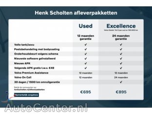 Aanvullende opties en accessoires ExterieurLED koplampenlichtmetalen velgen 17"panoramadakR-Design exterieurbuitenspiegels elektrisch verstel- en verwarmbaarbuitenspiegels met verlichtingdakspoilerextra getint glaskeyless entrykoplampen adaptiefkoplampreinigingLED achterlichtenLED dagrijverlichting InfotainmentNavigatiesysteem full map + hard diskaudio installatie premiumBluetooth telefoonvoorbereidingconnected servicesDAB ontvangerDVD spelermultimedia-voorbereidingspraakbedieningWiFi voorbereiding Interieur & Comfortachteruitrijcameraaluminium interieur afwerkingarmsteun achterarmsteun voorbinnenspiegel automatisch dimmendelektrische ramen achterelektrische ramen voorelektrisch verstelb. bestuurdersstoel met geheugenkeyless startlederen stuurwiellederen versnellingspooklendesteunen (verstelbaar)passagiersstoel in hoogte verstelbaarstandkachelstuurbekrachtiging snelheidsafhankelijkstuur verstelbaarstuurwiel multifunctioneel Veiligheidachteropkomend verkeer waarschuwingAutonomous Emergency Brakingalarm klasse 3bandenspanningscontrolesysteemBrake Assist Systemelektronische remkrachtverdelingElektronisch Stabiliteits Programmahill hold functiehoofd airbag(s) achterhoofd airbag(s) voorknie airbag(s)parkeer assistentparkeersensor achterparkeersensor voorpassagiersairbagvoetgangersairbagzij airbag(s) voor Overigstart/stop systeem Bijzonderheden Welkom bij familiebedrijf Henk Scholten. Sinds 1981 staat ons bedrijf voor het bieden van zorgeloze mobiliteit, van aanschaf en onderhoud tot schadeherstel. Iedere medewerker draagt onze waarden uit en streeft naar een zo persoonlijk mogelijke benadering. Henk Scholten is uw one-stop-shop voor alles rondom Volvo, Polestar en Lynk & Co. Wij bieden service, advies en kwaliteit waarbij we altijd nét dat stapje extra zetten. Bij ons bent u geen nummer: we kennen uw naam, onthouden uw wensen en geven u een zorgeloze ervaring. U komt voor onze merken, maar blijft voor Henk Scholten. Bij Henk Scholten kunt u in Het Gooi, Gelderland of Zuid-Limburg terecht in één van onze showrooms. Kies uit ons ruime aanbod van nieuwe en gebruikte auto’s, standaard meer dan 500 op voorraad. Staat uw droomauto er niet tussen? Neem dan gerust contact met ons op, wellicht verwachten wij binnenkort uw droomspecificatie. Meer informatie Algemene informatie Modelreeks: 2016 - 2019 Kenteken: H-596-DF Technische informatie Vermogen: 112 kW (152 PK) Koppel: 250 Nm Aantal cilinders: 4 Aandrijving: Voorwielaandrijving Tankinhoud: 62 liter Acceleratie (0-100): 8,3 s Topsnelheid: 210 km/u Maten Afmetingen (LxB): 437 x 180 cm Wielbasis: 265 cm Gewichten Laadvermogen: 622 kg GVW: 1.965 kg Max. trekgewicht: 1.500 kg (ongeremd 700 kg) Interieur Interieurkleur: V40 t3 gt r-design Aantal zitplaatsen: 5 Milieu CO?-uitstoot (NEDC): 132 g/km Energielabel: D Emissieklasse: Euro 6d-TEMP Verbruik Gemiddeld brandstofverbruik: 5,7 l/100km (1 op 17,5) Brandstofverbruik in de stad: 7 l/100km (1 op 14,3) Brandstofverbruik op de snelweg: 4,9 l/100km (1 op 20,4) Staat Optische staat: goed Staat interieur: goed Financiële informatie Motorrijtuigenbelasting: € 199 - € 217 per kwartaal Garantie Fabrieksgarantie: 12 maanden Beschikbare afleverpakketten: Beschikbare afleverpakketten: Standaard (inbegrepen): 12 maanden BOVAG-garantie.Volvo Used Car afleverpakket (€ 695 meerprijs): Voor €695 bieden wij het Volvo Used Car afleverpakket aan. Inclusief: 12 maanden garantieVolle tank/accuPoetsbehandeling met bodycoatingOnderhoudsbeurt volgens schemaNieuwste software geïnstalleerdNieuwe APKVolgende APK gratis t.w.v. €49,-12 maanden Volvo Assistance en Volvo on Call Dit afleverpakket bevat (in plaats van afleverpakket "Standaard"): Nieuwe APK Productveiligheid EU verantwoordelijke: Volvo Nederland B.V. Postbus 16 4153 ZG Beesd, NL 0345-688888 contact.vcnl@volvocars.com |