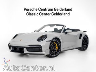 Aanvullende opties en accessoires Exterieur20/21 inch 911 Turbo S Exclusive Design wiel (46U)Krijt (3H3H)Led-matrix koplampen getint inclusief PDLS Plus (8JU)Sportuitlaatsysteem incl. ronde sporteindpijpen zwart (0P9)buitenspiegel(s) automatisch dimmendbuitenspiegels elektr. met geheugenbuitenspiegels elektrisch verstel- en verwarmbaarbuitenspiegels met verlichtingcentrale deurvergrendeling met afstandsbedieningdimlichten automatischkoplampen adaptiefkoplampreinigingLED achterlichtenLED dagrijverlichtingvoorspoiler InfotainmentBurmester® High-End SurroundSound-System (9VJ)Smartphone integratie (9WT)Bluetooth telefoonvoorbereidingconnected servicesDigital radio (QV3)multimedia-voorbereidingNavigatiesysteem full map + hard diskspraakbedieningWiFi voorbereiding Interieur & ComfortLight Design pakket (QQ2)Porsche Entry & Drive (4F2)Stoelventilatie (4D3)Stoelverwarming (4A3)Stuurbekrachtiging Plus (1N3)achteruitrijcameraaluminium interieur afwerkingbinnenspiegel automatisch dimmendelektrische ramen voorelektrisch verstelbare stuurkolom met geheugenInterieurpakket kastanje antraciet (5TT)lederen stuurwielschakelmogelijkheid aan stuurwielSportstoelen, elektrisch verstelbaar (Q2J)sportstuurstuurwiel multifunctioneelvariabele stuuroverbrenging VeiligheidRijstrookwisselhulp (7Y1)bandenspanningscontrolesysteemElektronisch Stabiliteits Programmahoofd airbag(s) voorparkeersensor achterparkeersensor voorpassagiersairbagzij airbag(s) voor OverigAchterasbesturing (0N5)Achteruitkijkspiegel paneel in leder (AVX)Achterzijde luchtinlaten zwart hoogglans gespoten (hoogglans) (VK2)Adaptieve sportstoelen Plus, elektrisch 18-voudig met geheugenpakket (Q1J)Autosleutel gespoten met sleuteletui leder (BYE)Bandenafdichtmiddel en elektrische luchtcompressor (1G8)Bekerhouder in leder (ALB)Bekleding stuurkolom leder (2C8)Buitenspiegelonderkappen in exterieurkleur inclusief spiegelvoeten gelakt in hoogglans zwart (6FJ)Deksel zekeringskast in leder (AVV)Dorpelbekleding binnenzijde in leder (ATG)Dorpellijsten carbon mat, met verlichting (7M8)Exclusive achterlichten (8VH)Exclusive tankdop in alu optiek (2W6)GT-sportstuurwiel incl. stuurwielverwarming (2PJ)HomeLink® (garagedeur opener) (VC2)Interieurpakket carbon (5MH)Interieurpakket stiksels in afwijkende kleur (6RD)Ionisator (2V4)Led deurverlichting met 'PORSCHE'-logo (UD1)Lederen luchtroosters en lederen lamellen met decoratief stiksel (AVC)Lederpakket 930 (3HB)Modelaanduiding in zwart hoogglans gespoten (0NC)Modellogo op armsteunen middenconsole (6E3)Opbergpakket (QE1)ParkAssistent inclusief Surround View (ParkAssistent inclusief Surround View, parkeer assistent) (KA6)PASM Sport Suspension (1BV)PDK keuzehendel aluminium (7F4)Porsche Ceramic Composite Brake (PCCB) (1LQ)Porsche Dynamic Chassis Control (PDCC) (1P7)Porsche embleem op hoofdsteunen voor (3J7)Porsche InnoDrive inclusief adaptieve cruise control (bots herkenning en activatie, cruise control adaptief met Stop&Go, file assistent) (3V1)Raamdriehoeklijsten carbon (ID0)Rokerspakket (9JD)Sport Chrono Pakket (8LH)SportDesign-pakket 911 Turbo gespoten in zwart hoogglans (VM3)Sportstoel Plus rugleuningen leder met decoratieve inleg leder (2TG)Veiligheidsgordels Krijt (FI8)Voorbereiding Porsche Dashcam (QK3)Wielen hoogglans hoogglans zwart gespoten (1NV)Wijzerplaat Sport Chrono wit (UP3)Wijzerplaten in wit (7V3)‘PORSCHE’ logo zwart hoogglans (KQ2)sportonderstelstart/stop systeem Bijzonderheden Deze Porsche 911 Turbo S Cabriolet in de kleur Krijt heeft slechts 10.189 kilometers gereden. De Porsche onderscheidt zich onder andere door unieke opties, zoals; SportDesign-pakket 911 Turbo gespoten in zwart hoogglans, Sportstoel Plus rugleuningen leder met decoratieve inleg leder, Lederen luchtroosters met lederen lamellen en het Interieurpakket met decoratieve stiksels in afwijkende kleur. Uiteraard is dit exemplaar nog verder te verfraaien door hoogwaardige accessoires van Porsche Tequipement. De Porsche 911, een echte legende in de autowereld, straalt tijdloze klasse en technische expertise uit. De typische motor achterin en het perfect uitgebalanceerd chassis zorgen voor puur rijplezier. Elke bocht, elke versnelling viert de autogeschiedenis en innovatie. Sinds zijn debuut in 1963 heeft de 911 generaties autoliefhebbers betoverd en blijft zijn erfenis voortleven. Of het nu op het circuit is of op de open weg, de 911 blijft synoniem voor indrukwekkende prestaties en tijdloze stijl. Sinds maart 2006 zijn wij exclusief Porsche dealer voor Gelderland. Ons bedrijf is centraal gelegen in Heteren aan de A50, te bereiken via de A12 en A15. Bij Porsche Centrum Gelderland vindt u een ruim aanbod van jongensdromen; van de eerste Porsche 356 tot aan het huidige model Porsche 911, Cayenne, Panamera, Cayman, Boxster, Macan en Taycan. Naast verkoop en onderhoud van de nieuwste modellen hebben wij ook een ruime ervaring op het gebied van klassiekers. Met de opening van het Porsche Classic Center Gelderland in 2015 hebben we een mijlpaal bereikt, het eerste officiële Classic Center ter wereld. In september 2025 hebben we de allereerste Porsche Exclusive Manufaktur showroom ter wereld geopend. In dit centrum voor maatwerk en exclusieve projecten staat alles in het teken van individualiteit, vakmanschap en liefde voor het detail. Hier kunnen klanten hun Porsche volledig naar eigen smaak laten samenstellen en unieke wensen realiseren. Een bijzondere mijlpaal voor het bedrijf en voor klanten. We bieden een totaalpakket van sales tot after sales. Voor schade en restauratie is de klant bij ons aan het juiste adres, hier hebben wij 2 divisies; 1. Reguliere Porsche schades 2. Restauratie van klassieke Porsches. Ook hebben we een eigen leasemaatschappij, Way2Drive. Onze haal –en brengservice door heel Nederland behoort tot onze faciliteiten. Ons team bestaat uit ruim 250 Porsche specialisten, ieder uniek op zijn of haar vakgebied. Specialisme en passie voor Porsches heeft meerdere malen geleid tot de titel ‘Excellente dealer’. 'Porsche 