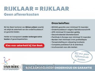Aanvullende opties en accessoires ExterieurBuitenspiegels elektrisch verstel- en verwarmbaarDimlichten automatischElektronische remkrachtverdelingGrootlichtassistentLED dagrijverlichtingmistlampen voorParkeersensor achter InfotainmentMultimedia-voorbereidingNavigatiesysteem full mapRadioSpraakbediening InterieurBinnenspiegel automatisch dimmendElektrische ramen voorStuur verstelbaar MilieuStart/stop systeem VeiligheidAirbag(s) hoofd achterAirbag(s) hoofd voorAirbag(s) side voorAirbag passagierAlarm klasse 1(startblokkering)Autonomous Emergency BrakingBandenspanningscontrolesysteembots waarschuwing systeemBrake Assist SystemElektronisch Stabiliteits ProgrammaHill hold functieRijstrooksensorVerkeersbord detectieVermoeidheids herkenning OverigeAchteropkomend verkeer waarschuwingandere dakkleurApple Carplay/Android AutoBluetoothcentrale vergrendeling met afstandsbedieningConnected servicesDabstuur multifunctioneel Bedrijfsinformatie RIJKLAARPRIJS! Van Beek Occasion (boven €4500,-) wordt altijd geleverd incl.: 12 mnd Spoticar Garantie | complete inspectie + servicebeurt | Minimaal 1 jaar APK | Volledige reiniging in- en exterieur | Halve tank brandstof | Tenaamstelling Kenteken + vrijwaring van uw inruilauto. Kijk voor meer info op vanbeekautogroep.nl Zetfouten voorbehouden. Van Beek Autogroep is al jaren op rij uitgeroepen tot beste dealer van Nederland. Meer informatie Algemene informatie Modelreeks: jun. 2018 - apr. 2020 Kenteken: TK-646-S Technische informatie Vermogen: 61 kW (83 PK) Koppel: 118 Nm Aantal cilinders: 3 Aandrijving: Voorwielaandrijving Tankinhoud: 45 liter Acceleratie (0-100): 13,3 s Topsnelheid: 166 km/u Maten Afmetingen (LxBxH): 400 x 175 x 149 cm Wielbasis: 254 cm Gewichten Laadvermogen: 595 kg GVW: 1.550 kg Max. trekgewicht: 450 kg (ongeremd 450 kg) Interieur Bekleding: Stof Aantal zitplaatsen: 5 Milieu CO?-uitstoot: 133 g/km Energielabel: C Emissieklasse: Euro 6 Verbruik Gemiddeld brandstofverbruik: 4,8 l/100km (1 op 20,8) Brandstofverbruik in de stad: 5,8 l/100km (1 op 17,2) Brandstofverbruik op de snelweg: 4,2 l/100km (1 op 23,8) Historie Aantal eigenaren: 4 Financiële informatie BTW/marge: BTW niet verrekenbaar voor ondernemers (margeregeling) Motorrijtuigenbelasting: € 119 - € 129 per kwartaal Garantie Garantielabels: SPOTiCAR Advanced (12 maanden), BOVAG Garantie (12 maanden) Productveiligheid Fabrikant: Van Beek Vlissingen Marie Curieweg 25 4389WB RITTHEM, NL 0118629955 http://www.vanbeekautogroep.nl leads@citroenvanbeek.nl |