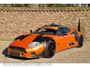 Aanvullende opties en accessoires Alarm klasse 1(startblokkering)Wettelijke garantie Bijzonderheden Deze Spyker C8 Laviolette LM85 werd in 2009 gebouwd als eerste in een voorgenomen serie van 24 auto’s. Het werden er uiteindelijk slecht 14. Bij het ter perse gaan van deze tekst is het moederbedrijf van Spyker failliet. Voormalig Spyker CEO, Victor Muller, beweerd nog altijd dat een wederopstanding van het Nederlandse sportwagenmerk aanstaande is en slechts een kwestie van tijd. Menig kat zal de afgelopen jaren jaloers naar het, ogenschijnlijk, onuitputtelijke aantal levens van Spyker hebben gekeken, maar nu lijkt de koek dan toch echt op. Over het tumultueuze bestaan van Spyker zijn inmiddels boeken vol geschreven en gaan we in deze tekst dus niet te ver over uitweiden. Formule 1, Le Mans en zelfs de overname van Saab, niets leek te gek voor het merk uit Zeewolde. Van de drie avonturen was Le Mans misschien nog wel het meest succesvolle en de meest logische stap. Le Mans was ook de directe aanleiding voor de hier getoonde uitvoering van de Spyker C8 Laviolette: de LM85. De auto werd geleverd aan goede vriend en zakenpartner van Victor Muller: Vladimir Antonov. In de zeer uitgebreide documentatie die bij de auto aanwezig is. In de documentatie valt onder andere een e-mail van Antonov aan een latere eigenaar te lezen waarmee hij hem feliciteert met de aanschaf van deze fantastische auto. De documentatie van de auto is eigenlijk de beste plek om te beginnen want dit exemplaar is werkelijk zeldzaam compleet. Zo is vanzelfsprekend de aluminium boordmap aanwezig met daarin de handleiding en het onderhoudsboek evenals een aantal visitekaartjes van mensen die u niet langer kunt bereiken. De handleiding is tevens gesigneerd door de ontwerper van de auto: Maarten de Bruijn. Daarnaast zijn er stukken aanwezig die de originaliteit van de auto onderschrijven. Verder is er een grote ordner aanwezig met daarin een monteurshandleiding. Tot slot zijn er diverse fotoseries van de auto aanwezig. Zo zijn er foto’s die gemaakt zijn tijdens een paar ritten die met de auto zijn gemaakt en zijn er foto’s van de auto toen zij werd gepresenteerd op verschillende shows. Tot slot zijn er foto’s van de auto die gemaakt zijn tijdens de parade lap op Le Mans voorafgaand aan de race van 2009. Om de volledige documentatie en daarbij behorende randzaken te beschrijven zou deze tekst veel te lang worden daarom hierbij een opsomming van zaken die bij de auto worden geleverd: 1. Handleiding en onderhoudsboek in aluminium boordmap 2. TUV-papieren 3. Nederlandse kenteken papieren 4. Certificate of origin, uitgegeven door Spyker 5. LM85 verkoopbrochure 6. Werkplaatshandleiding 7. Facturen van het onderhoud door de jaren heen 8. Oudere correspondentie tussen vorige eigenaren 9. Foto boek met geschiedenis van de auto 10. Map met historie en kopieën van oudere registraties van de auto 11. Twee lederen koffers van spyker 12. Spyker autohoes voor binnen 13. Spyker autohoes voor buiten 14. Spyker LM85 limited edition horloge van TW Steel gesigneerd door Maarten de Bruijn 15. Spyker C8 Laviolette telefoon 16. MP3-speler met headset 17. Originele sleutel en Spyker “puck” 18. Reserve sleutel en Clifford afstandsbediening voor het alarm 19. Spyker druppellader met snelkoppeling 20. Tankdop met slot 21. Spyker kenteken mapje 22. Petten gesigneer door Maarten de Bruijn en Tom Coronel tijdens Le Mans 23. Gesigneerde Spyker Squadron overhemden 24. Gesigneerde Spyker Squadron polo’s Dat deze auto dus perfect is gedocumenteerd en is voorzien van alle zaken die het bezit van een Spyker tot een unieke beleving moesten maken, mag dus een understatement heten. Het zijn niet alleen de polo’s petten en overhemden die zijn gesigneerd tijdens de Driver Parade van Le Mans in 2009 maar ook de auto zelf. Maarten de Bruijn en Tom Coronel hebben beide de auto gesigneerd aan de binnenzijde van de neus. Vanzelfsprekend is deze Spyker C8 Laviolette LM85 volledig schadevrij. Sinds 2009 is er slechts 7.651 kilometer met de auto gereden. De conditie van de auto liegt er dan ook niet om. Die laat zich niet anders omschrijven dan onberispelijk. De auto is vanzelfsprekend 100 procent origineel en staat tevens volledig in de eerste lak. Bij het openen van één van de naar boven scharnierende portieren is direct duidelijk dat de Spyker destijds naar een zeer hoge kwaliteitsstandaard werd gebouwd. De deuren gaan zeer precies naar boven en vrijwel zonder moeite. Ook de neus van de auto laat zich eenvoudig naar voren klappen en geeft dan een prachtige aluminium voorwielophanging weer die tevens onderdak biedt aan verschillende aanbouwdelen uit de stal van Audi. De Spyker LM85 staat op prachtige 19 inch “Aeroblade” wielen met een centerlock. De wielen worden prachtig gevuld door een paar uiterst krachtige AP Remmen met 6 zuigers aan de voorzijde en 4 zuigers voor de achterwielen. De ophanging bestaat uit volledig instelbare Koni dempers die rondom zijn bevestigd aan dubbele wishbones. De lak heeft de prachtige naam “Burned Almond Orange” en is in dit geval voorzien van diverse Gunmetal accenten. Daarnaast is de auto voorzien van een intake op het dak die is gemaakt van gepolijst aluminium. Het gepolijste aluminium komt vaker terug op de carrosserie en vormt een prachtig contrast met de oranje lak. De uitlaat is voorzien van aangepaste eindstukken ten opzichte van “gewone” Spykers. Tot slot is de LM85 te herkennen aan een kleine achterspoiler, oranje raamband, grote diffuser en een splitter aan de voorzijde. Het interieur is eveneens een kunstwerk en verkeert uiteraard vrijwel in nieuwstaat. Het stuurwiel is voorzien van een airbag en is afkomstig van Lamborghini omdat het voor Spyker in verband met typegoedkeuringen niet langer was toegestaan het schitterende airbag-loze stuurwiel met de kenmerken vier spaken te monteren. De instrumenten zijn allen voorzien van prachtig Spyker opschrift en houden u op de hoogte van de vitale functies van de